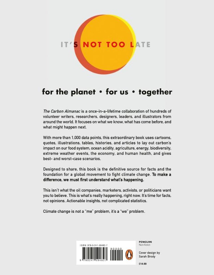 The Carbon Almanac is a once-in-a-lifetime collaboration between hundreds of writers, researchers, thinkers, and illustrators that focuses on what we know, what has come before, and what might happen next. Drawing on over 1,000 data points, the book uses cartoons, quotes, illustrations, tables, histories, and articles to lay out carbon’s impact on our food system, ocean acidity, agriculture, energy, biodiversity, extreme weather events, the economy, human health, and best and worst-case scenarios. Visually engaging and built to share, The Carbon Almanac is the definitive source for facts and the basis for a global movement to fight climate change.