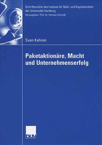 Sven Kehren untersucht die Interaktion von Paketaktionären. Im Mittelpunkt steht der Zusammenhang zwischen Aktionärsstruktur, Machtverhältnissen und Unternehmenserfolg. Er stützt sich dabei auf eine eigene, aus verschiedenen Datenquellen zusammengeführte Datenbank deutscher Aktiengesellschaften für die Jahre 1996 bis 2000, auf multiple Regressionsmodelle und nichtlineare univariate Techniken. Die Ergebnisse sind wenig ausgeprägt und widersprüchlich, doch scheint sich ein mächtiger zweiter Paketaktionär positiv auf den Unternehmenserfolg auszuwirken.