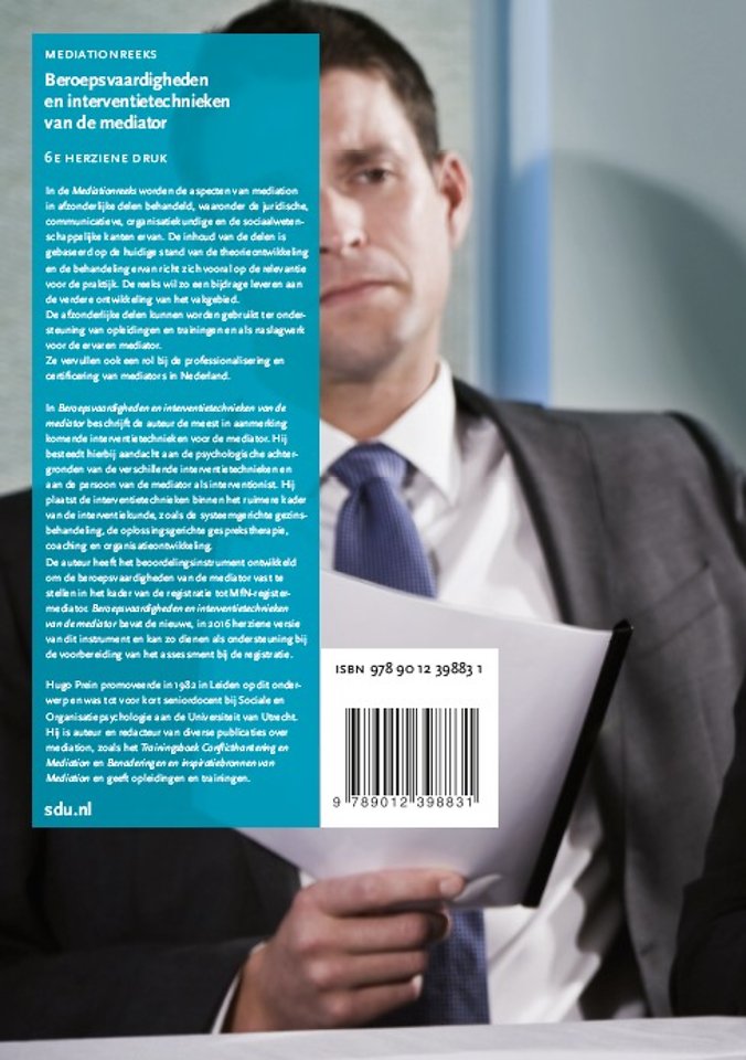 Hugo Prein promoveerde in 1982 in Leiden op dit onderwerp en was tot voor kort seniordocent bij Sociale en Organisatiepsychologie aan de Universiteit van Utrecht. Hij is auteur en redacteur van diverse publicaties over mediation, zoals het Trainingsboek Confl icthantering en Mediation en Benaderingen en inspiratiebronnen van Mediation en geeft opleidingen en trainingen.