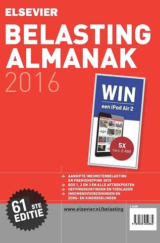 De 'Belasting Almanak 2016' maakt ingewikkelde fiscale onderwerpen toegankelijk, doordat de teksten in begrijpelijke taal zijn geschreven en zijn aangevuld met heldere praktijkvoorbeelden. Zo weet de koper zeker dat hij altijd op de hoogte blijft van de laatste fiscale ontwikkelingen. Elsevier Belasting Almanak is dus onmisbaar om de belastingaangifte te verzorgen, óók als elektronisch wordt aangegeven.