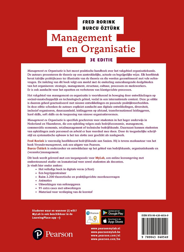 Het vakgebied van management en organisatie is voortdurend in beweging door ontwikkelingen op sociaal-maatschappelijk en technologisch gebied, veelal in een internationale context. Deze 3e editie is daarom geheel geactualiseerd met nieuwe ontwikkelingen en passende praktijkvoorbeelden. In deze editie schenken de auteurs expliciet aandacht aan digitale ontwikkelingen, diversiteit, inclusief organiseren, duurzaamheid, leidinggeven op afstand, transformationeel leidinggeven, hard skills, soft skills en de toepassing van nieuwe organisatievormen.