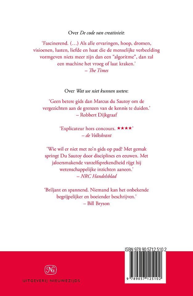 Meer over Marcus Du Sautoy‘Fascinerend. (…) Als alle ervaringen, hoop, dromen, visioenen, lusten, liefde en haat die de menselijke verbeelding vormgeven niets meer zijn dan een “algoritme”, dan zal een machine het vroeg of laat kraken.’ – The Times
