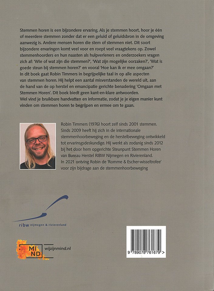 Stemmen horen is een bijzondere ervaring. Als je stemmen hoort, hoor je een of meerdere stemmen zonder dat er een geluid of geluidsbron in de omgeving aanwezig is. Andere mensen horen die stem of stemmen niet. Dit soort bijzondere ervaringen kom veel voor en roept veel vraagtekens op. Zowel stemmenhoorders en hun naasten als hulpverleners en onderzoekers vragen zich af: 'Wie of wat zijn die stemmen?', 'Wat zijn mogelijke oorzaken?', 'Wat is de goede steun bij stemmen horen?'en vooral 'Hoe kan ik er mee omgaan?'In dit boek gaat Robi Timmers in begrijpelijke taal in op alle aspecten van stemmen horen. Hij helpt een aantal misverstanden de wereld uit, aan de hand van de op herstel en emancipatie gerichtebenadering 'Omgaan met Stemmen Horen'. Dit boek biedt geen kant en klare antwoorden. Wel vindt je bruikbare handvaten en informatie, zodat je je eigen manier kunt vinden om stemmen horen te begrijpen en ermee om te gaan.