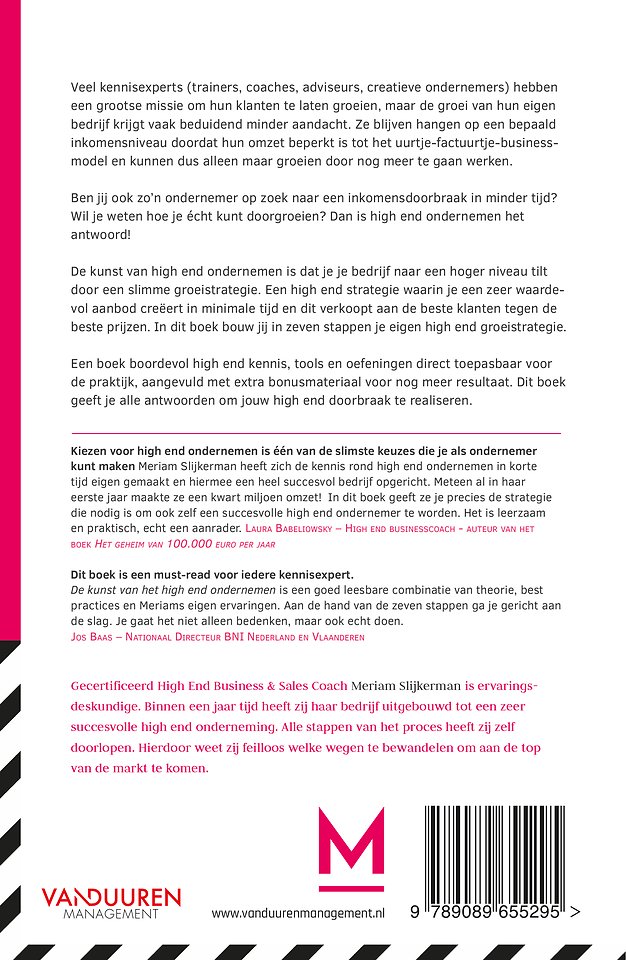 Een boek boordevol high end kennis, tools en oefeningen direct toepasbaar voor de praktijk, aangevuld met extra bonusmateriaal voor nog meer resultaat. Dit boek geeft je alle antwoorden om jouw high end doorbraak te realiseren.