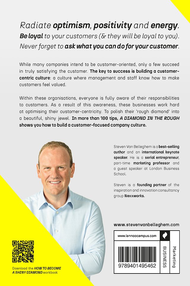 Within these organisations, everyone is fully aware of their responsibilities to customers. As a result of this awareness, these businesses work hard at optimising their customer-centricity. To polish their ‘rough diamond’ into a beautiful, shiny jewel. In more than 100 tips, A Diamond in the Rough shows you how to build a customer-focused company culture.