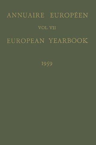 Table des Matières / Table of Contents.- Articles.- La C.E.C.A. En 1960.- Summary in English 39..- La Politique Agricole Commune de la Communauté Économique Européenne.- Summary in English 70..- La Cour Européenne des Droits de L’Homme.- Summary in English 92..- The European Conference of Postal and Telecommunications Administrations.- Résumé en francais III..- Le Collège D’Europe à Bruges (1950–1960).- Summary in English 132..- Technical Assistance for Newly Developing Countries.- Résumé en francais 143..- The European Monetary Agreement: Its Structure and Working.- Résumé en français 168..- Section Documentaire / Documentary Section.- Chapitre I. Union Douanière Benelux / Chapter I. Benelux Customs Union.- A. Ephémérides 1959 / Diary of Events 1959.- B. Textes Fondamentaux / Basic Texts.- 1. Convention Benelux en matière de marques de produits / Benelux Convention regarding Trade Marks.- 2. Loi uniforme Benelux en matière de marques de produits / Uniform Benelux Law regarding Trade Marks.- C. Publications / Publications (In French).- D. Organigramme / Organization Chart.- Chapitre II. Union de L’Europe Occidentale / Chapter II. Western European Union.- A. Chronologie des Principaux Événements de 1959 / Chronology of Principal Events in 1959.- B. Activités / Activities.- 1. Agence pour le Contrôle des Armements / Armaments Control Agency.- 2. Comité permanent des Armements / Standing Armaments Committee.- 3. Coopération sociale / Social co-operation.- 4. Coopération culturelle / Cultural co-operation.- 5. Comité de l’Administration publique / Public Administration Committee.- C. Textes Fondamentaux / Basic Texts.- 1. Résolution modifiant le paragraphe IVd) de l’Annexe III au Protocole No. III du Traité de Bruxelles amendé / Resolution amending paragraph IV d) of Annex III to Protocol no. III of the amended Brussels Treaty.- 2. Protocole relatif à l’adhésion de la Grèce, de la Norvège et de la Suède à la Convention concernant les stagiaires, signée à Bruxelles le 17 avril 1960 / Protocol concerning the accession of Greece, Norway and Sweden to the Convention concerning Student Employees, signed in Brussels on April 17th, 1950.- D. Principaux Fonctionnaires / Principal Officials.- Chapitre III. Organisation Européenne de Coopération Économique / Chapter III. Organisation for European Economic Cooperation.- A. Aactivités / Activities.- B. Chronologie 1959 / Chronology 1959.- C. Textes Fondamentaux / Basic Texts.- 1. Membres / Membership.- (a) Décision du Conseil relative à l’adhésion de l’Espagne à la Convention de coopération économique européenne / Decision of the Council concerning the accession of Spain to the Convention for European Economic Co-operation.- (b) Décision du Conseil approuvant le Projet d’Accord entre l’Organisation et le Gouvernement yougoslave relatif à la participation de la Yougoslavie aux travaux de l’Organisation intéressant l’agriculture et l’alimentation / Decision of the Council approving the Draft Agreement between the Organisation and the Yugoslav Government concerning the participation of Yugoslavia in the work of the Organisation relating to agriculture and food.- 2. Mouvements de capitaux / Capital movements.- (a) Décision du Conseil relative au Code de la libération des mouvements de capitaux + Annexe I; Annexe II — Réserves formulées au sujet du Code de la libération des mouvements de capitaux et acceptées par le Conseil; Annexe III — Abrogation des décisions du Conseil / Decision of the Council concerning the Code of Liberalisation of Capital Movements + Annex I; Annex II — Reservations accepted by the Council to the Code of Liberalisation of Capital Movements; Annex III — Repeal of decisions of the Council.- (b) Décision du Conseil concernant l’application à la Grèce, à l’Islande, à l’Espagne et à la Turquie des dispositions du Code de la libération des mouvements de capitaux / Decision of the Council concerning the application to Greece, Iceland, Spain and Turkey of the provisions of the Code of Liberalisation of Capital Movements.- 3. Accord monétaire européen / European Monetary Agreement.- (a) Protocole additionnel No. 2 portant amendement à l’Accord monétaire européen du 5 août 1955 / Supplementary Protocol No. 2 amending the European Monetary Agreement of 5th August, 1955.- (b) Acte du Secrétaire Général constatant la terminaison de l’Accord sur l’établissement d’une Union européenne de paiements et la mise en application de l’Accord monétaire européen / Act of the Secretary-General establishing the termination of the Agreement for the establishment of a European Payments Union and the application of the European Monetary Agreement.- (c) Décision du Conseil relative à la terminaison de l’Accord sur l’établissement d’une Union européenne de paiements et à l’application de l’Accord monétaire européen / Decision of the Council relating to the termination of the Agreement for the establishment of a European Payments Union and the application of the European Monetary Agreement.- (d) Décision du Conseil relative à l’exercice financier de l’Accord monétaire européen / Decision of the Council concerning the financial year of the European Monetary Agreement.- (e) Décision du Conseil relative à l’adhésion de l’Espagne à l’Accord monétaire européen / Decision of the Council concerning the accession of Spain to the European Monetary Agreement.- (f) Décision du Conseil portant amendement à l’Accord monétaire européen à la suite de l’adhésion de l’Espagne / Decision of the Council amending the European Monetary Agreement in connection with the accession of Spain.- (g) Décision du Conseil relative à la prorogation du Titre II de l’Accord monétaire européen et à des questions connexes + Annexe A — Amendements de l’Accord; Annexe B — Projet de Protocole additionnel No. 3 por