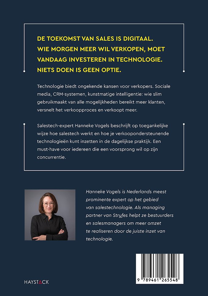 Meer over Hanneke VogelsDe toekomst van sales is digitaal. Wie morgen meer wil verkopen, moet vandaag investeren in technologie. Niets doen is geen optie. Technologie biedt ongekende kansen voor verkopers. Sociale media, CRM-systemen, kunstmatige intelligentie: wie slim gebruikmaakt van alle mogelijkheden bereikt meer klanten, versnelt het verkoopproces en verkoopt meer.