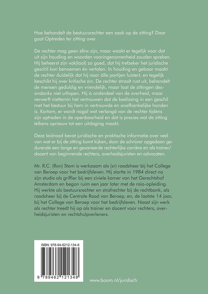 Hij is onderdeel van de overheid, maar verwerft niettemin het vertrouwen dat de beslissing in een geschil met het bestuur bij hem in vertrouwde en onafhankelijke handen is. Kortom, er wordt nogal wat verlangd van de rechter tijdens zijn optreden in de openbaarheid en dat is precies wat de zitting telkens opnieuw tot een uitdaging maakt. Deze leidraad bevat juridische en praktische informatie over veel van wat er bij de zitting komt kijken, door de schrijver opgedaan gedurende een lange en gevarieerde rechterlijke carrière en als trainer/docent van beginnende rechters, overheidsjuristen en advocaten.