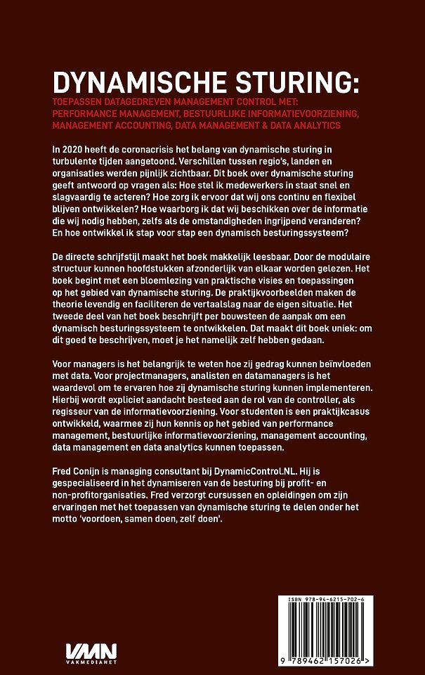 Dit boek over dynamische sturing geeft antwoord op vragen als: Hoe stel ik medewerkers in staat snel en slagvaardig te acteren? Hoe zorg ik ervoor dat wij ons continu en flexibel blijven ontwikkelen? Hoe waarborg ik dat wij beschikken over de informatie die wij nodig hebben, zelfs als de omstandigheden ingrijpend veranderen? En hoe ontwikkel ik stap voor stap een dynamisch besturingssysteem?