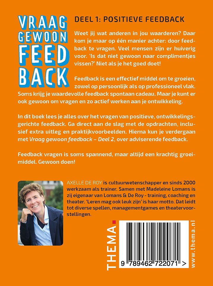 In dit boek lees je alles over het vragen van positieve, ontwikkelingsgerichte feedback. Ga direct aan de slag met de opdrachten, inclusief extra uitleg en praktijkvoorbeelden. Hierna kun je verdergaan met Vraag gewoon feedback – Deel 2, over adviserende feedback.