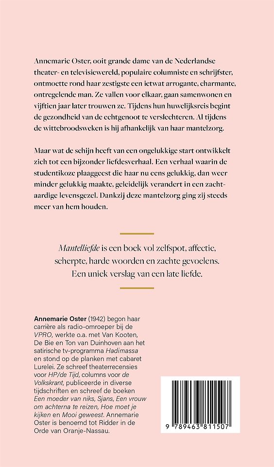 Mantelliefde is een boek vol zelfspot, affectie, scherpte, harde woorden en zachte gevoelens. Een uniek verslag van een late liefde.