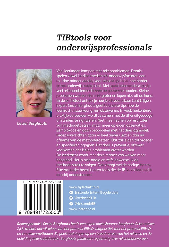 Rekenspecialist Ceciel Borghouts heeft een eigen adviesbureau: Borghouts Rekenadvies. Zij is (mede) ontwikkelaar van het protocol ERWD, diagnostiek met het protocol ERWD,
