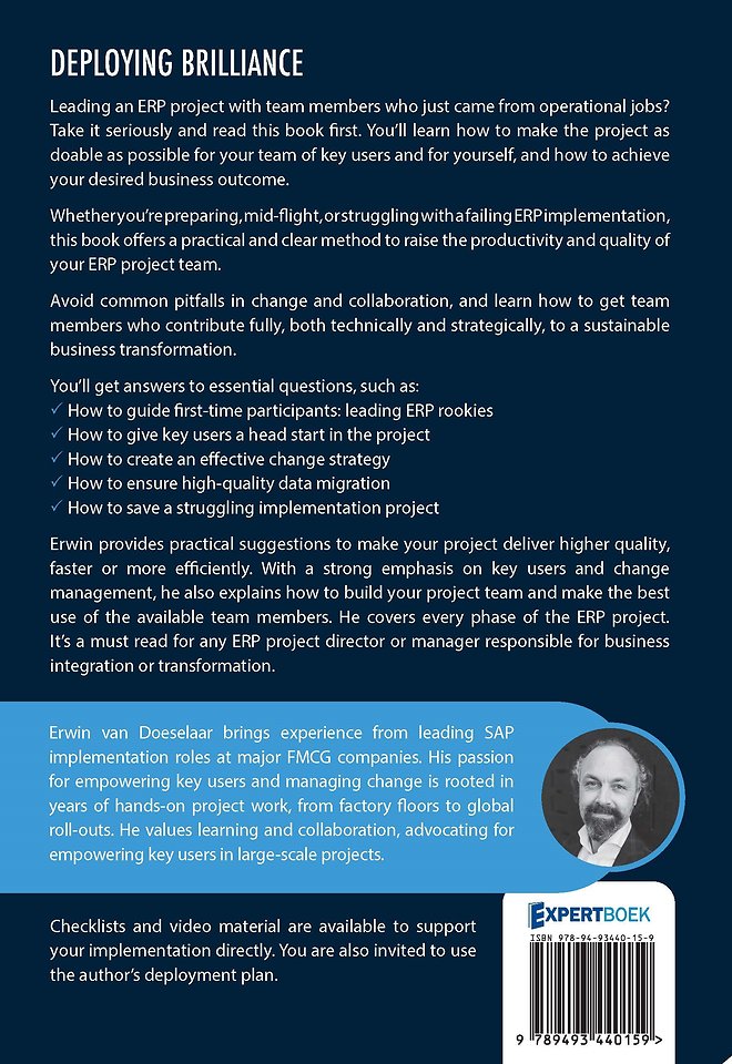 Leading an ERP project with team members who just came from operational jobs? Take it seriously and read this book first. You’ll learn how to make the project as doable as possible for your team of key users and for yourself, and how to achieve your desired business outcome.